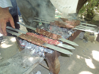 My family and I spent the past few days in Halabja, visiting various relatives and seeing the sights. People here go on picnics that last all day long, where they grill meat and make tea on an open fire, and pick fruit while relaxing. Often times on these expeditions people wear traditional Kurdish clothes, which are three layers thick. For men, you wear silk or satin undershirt and pants, a sparkly beaded dress over it, and then a sleeveless vest over that. Most include a coined belt made of real gold or silver. My mom sister and I all had an outfit tailored: